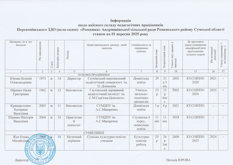 Кадровий склад ЗДО згідно з ліцензійними умовами