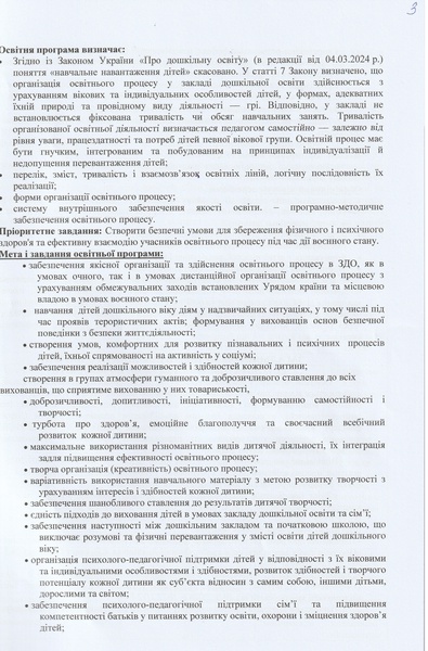 Наш ЗДО працює за освітньою програмою "Дитина" для дітей віком від 2 до 6(7) років :