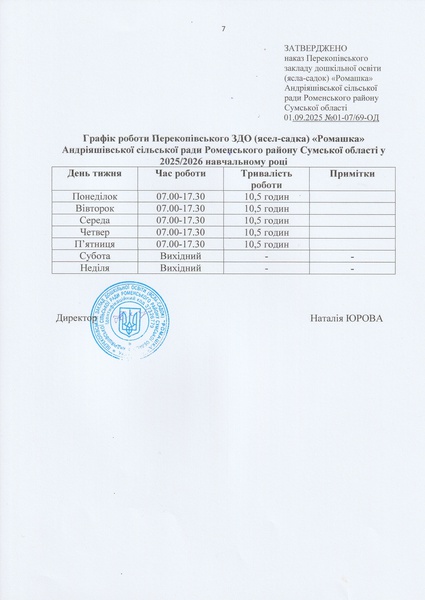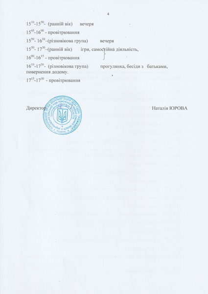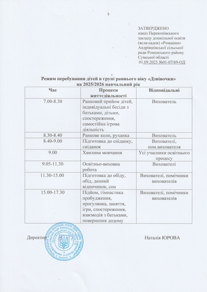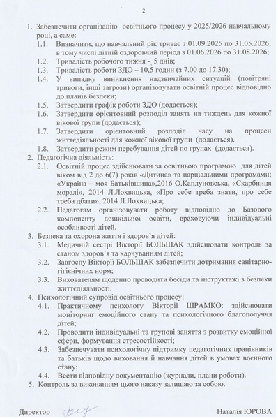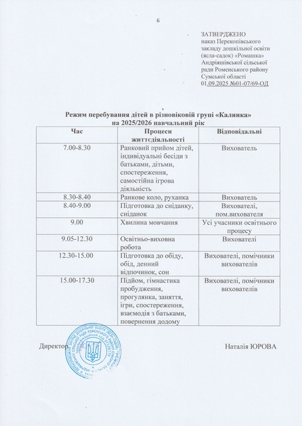 ЗАКЛАД ДОШКІЛЬНОЇ ОСВІТИ ЗДІЙСНЮЄ СВОЮ ДІЯЛЬНІСТЬ ВІДПОВІДНО ДО ПЛАНУ РОБОТИ, ЯКИЙ СКЛАДАЄТЬСЯ НА НАВЧАЛЬНИЙ РІК ТА ОЗДОРОВЧИЙ ПЕРІОД. ПЛАН РОБОТИ ЗАКЛАДУ ДОШКІЛЬНОЇ ОСВІТИ СХВАЛЮЄТЬСЯ ПЕДАГОГІЧНОЮ РАДОЮ ЗАКЛАДУ, ЗАТВЕРДЖУЄТЬСЯ ДИРЕКТОРОМ ЗАКЛАДУ.