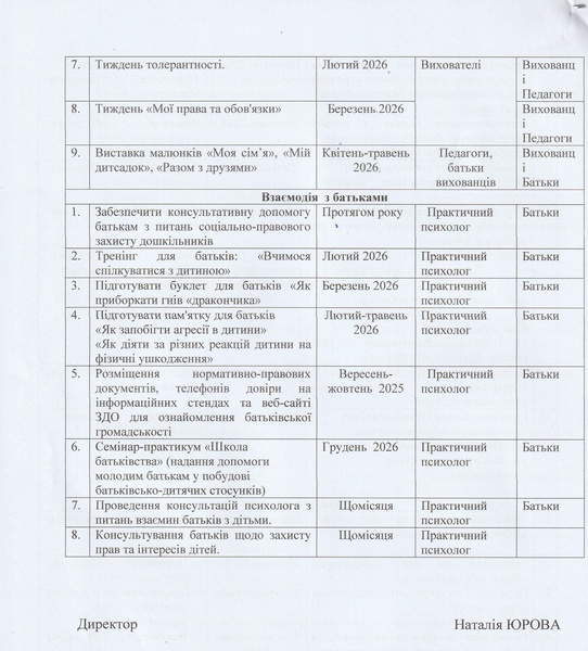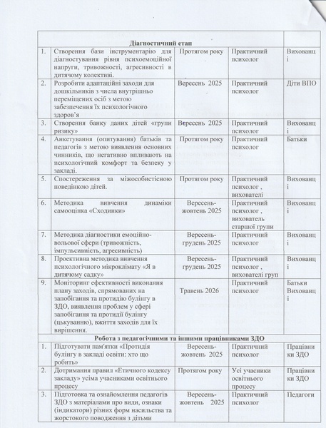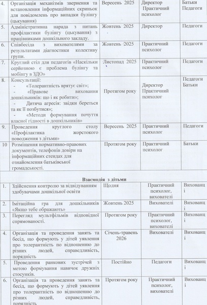 План заходів з питань протидії булінгу (цькуванню) на 2025/2026 навчальний рік