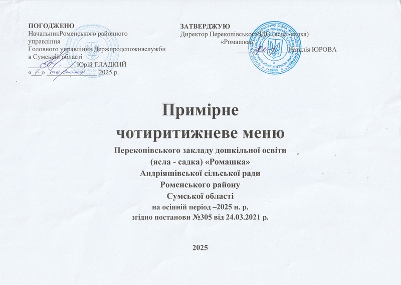 Примірне чотиритижневе меню на осінній період 2025 року згідно постанови №305 від 24.03.2021 року