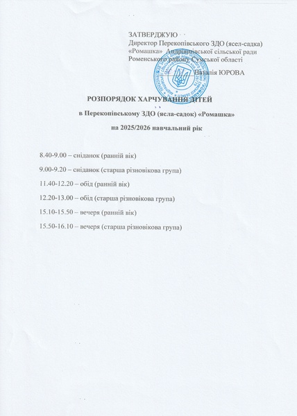 Розпорядок харчування та Графік видачі їжі